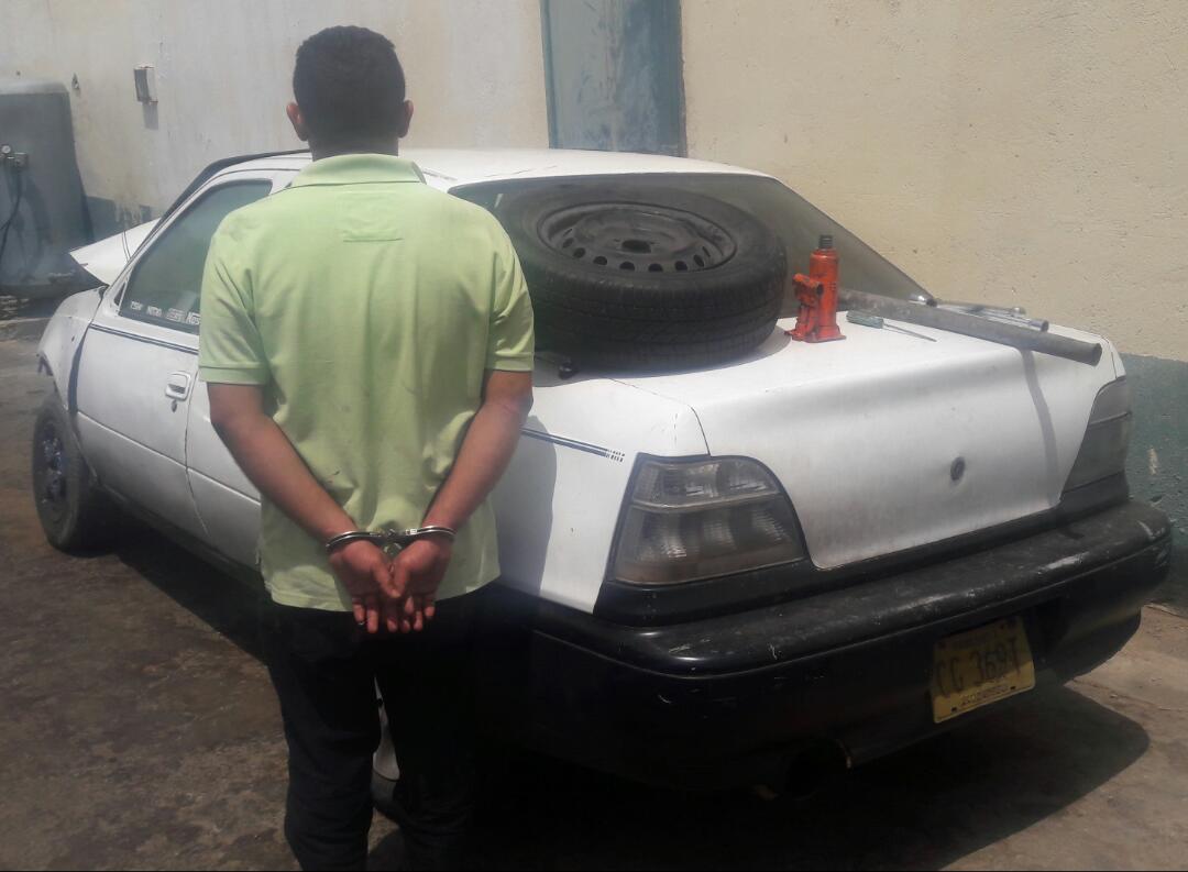 “Este ciudadano finalmente perdió el control del vehículo en las inmediaciones del centro comercial aventura plaza, impactando contra un poste del alumbrado público, dejando como resultado daños materiales al ornato de la cuidad; igualmente se le incautó dentro de su vehículo marca daewoo, modelo cielo de color blanco, placa: cg3-69t, un neumático marca radial provisto de un ring 14, una llave cruz, un gato hidráulico tipo botella, un destornillador de pala y un (01) segmento de tubo de metal, herramientas utilizadas para perpetrar dichos hurtos”, refirió el Coronel Salazar.
